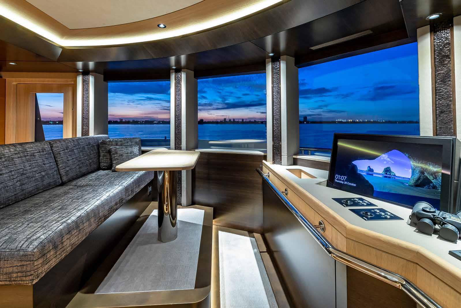 The foredeck has a large curving sofa with drinks tables to take in the beautiful surroundings in complete comfort, and sunbeds cover the forward section for guests to warm themselves in the summery sunshine.