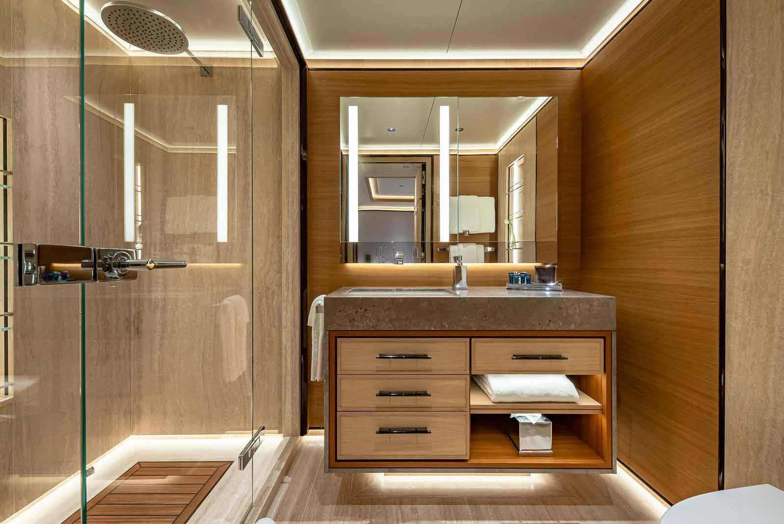 Her accommodation spreads over 6 deluxe ensuite cabins for up to 12 guests, while there are further cabins for a crew of 19.