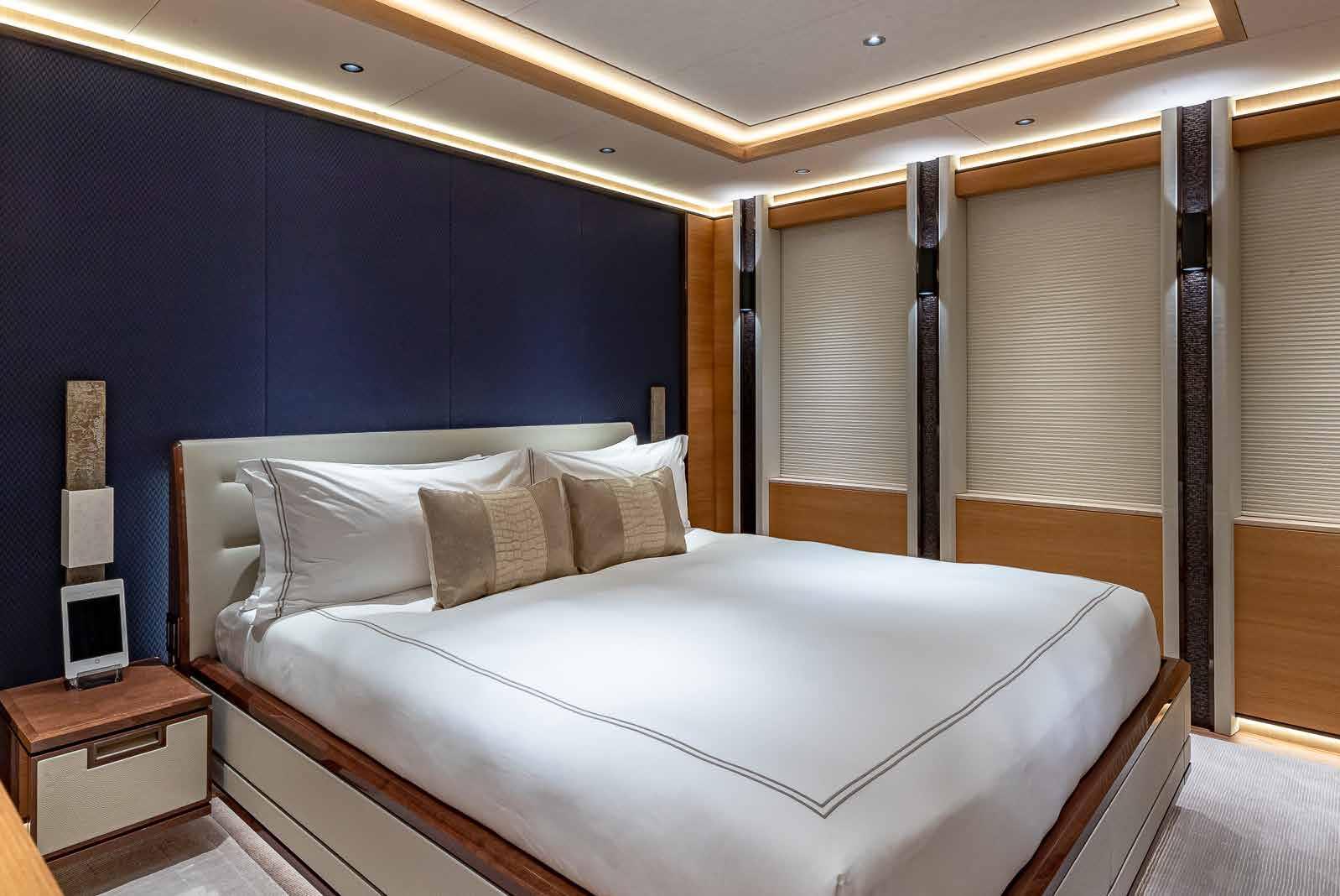 Her accommodation spreads over 6 deluxe ensuite cabins for up to 12 guests, while there are further cabins for a crew of 19.
