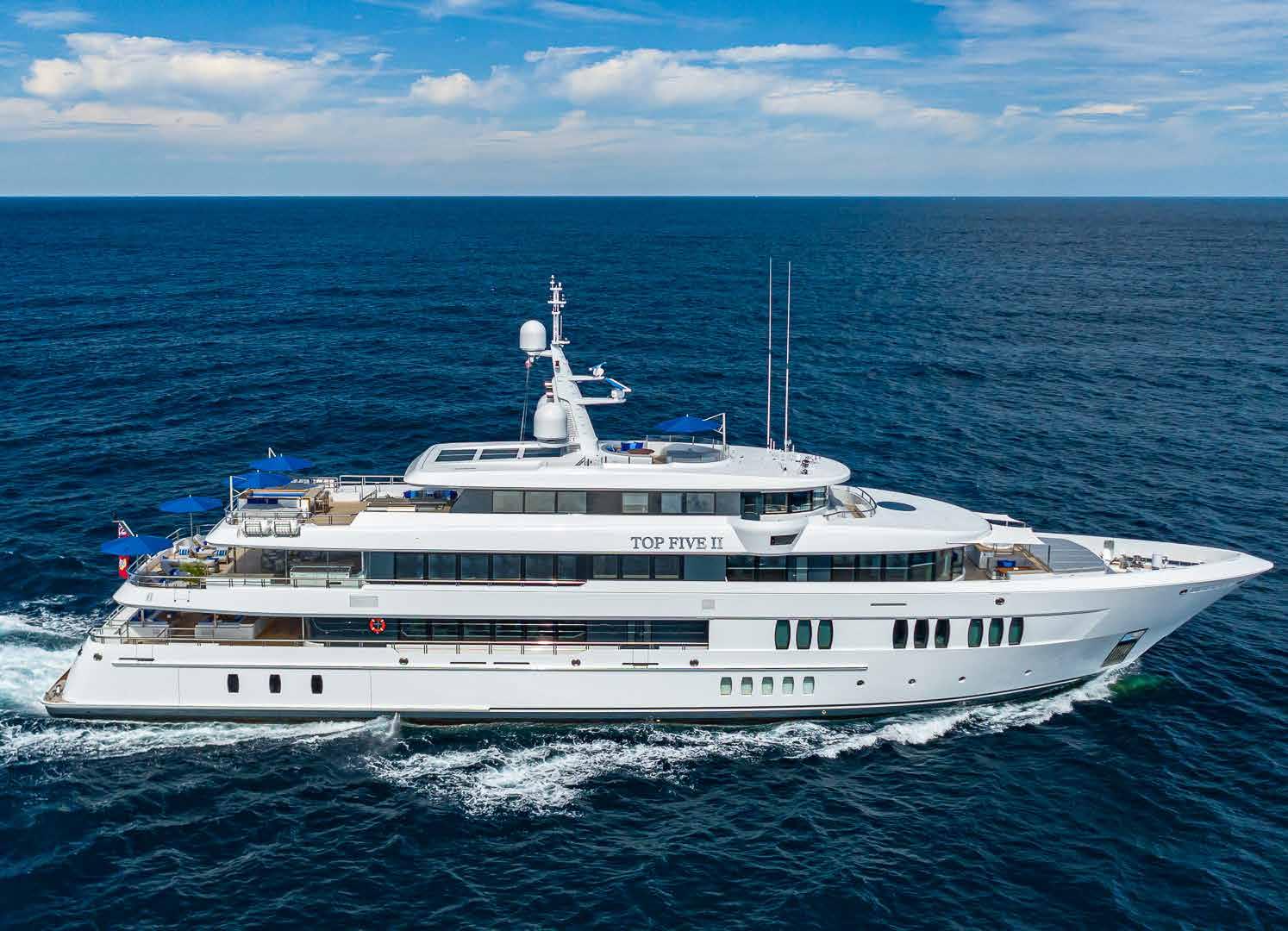 M/Y TOP FIVE II provides yacht charters in The Caribbean, Directory, Bvi, Greenland, Windward Islands, Leeward Islands, and Bahamas.
