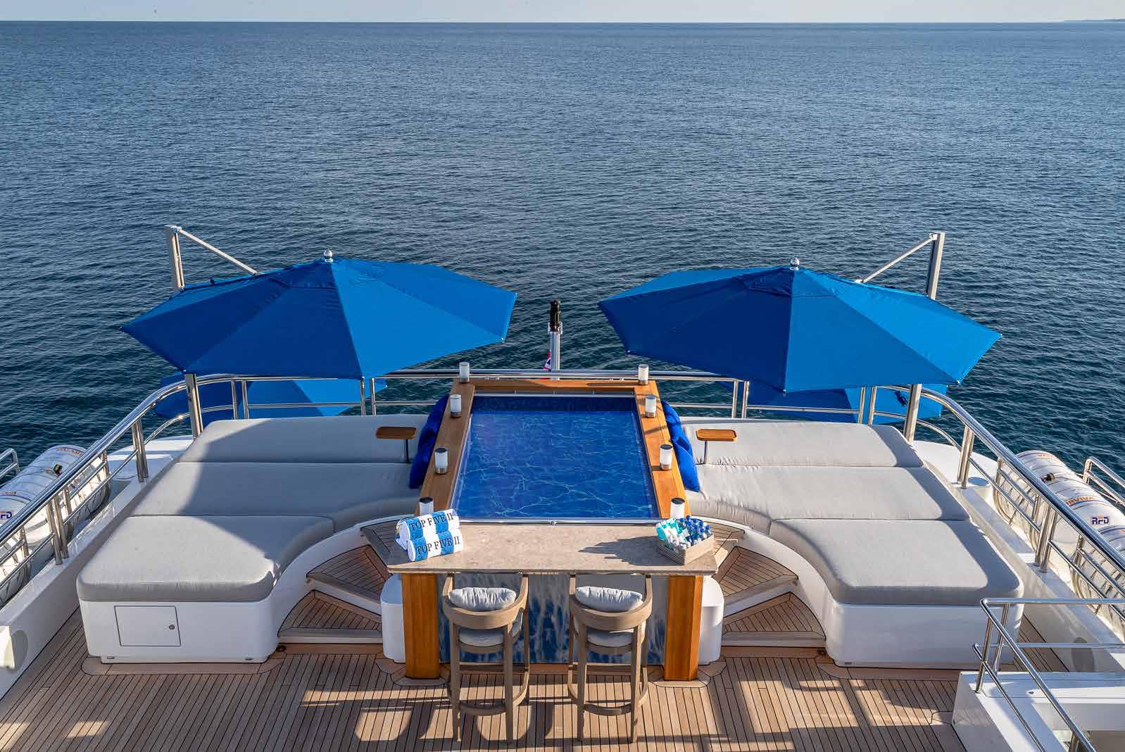 NOTABLE FEATURES OF TOP FIVE II: ~Sundeck Jacuzzi ~Swimming pool ~Beach club ~Sauna ~Fire pit ~Transatlantic range of 3,800 nautical miles ~Air conditioning ~Wi-Fi