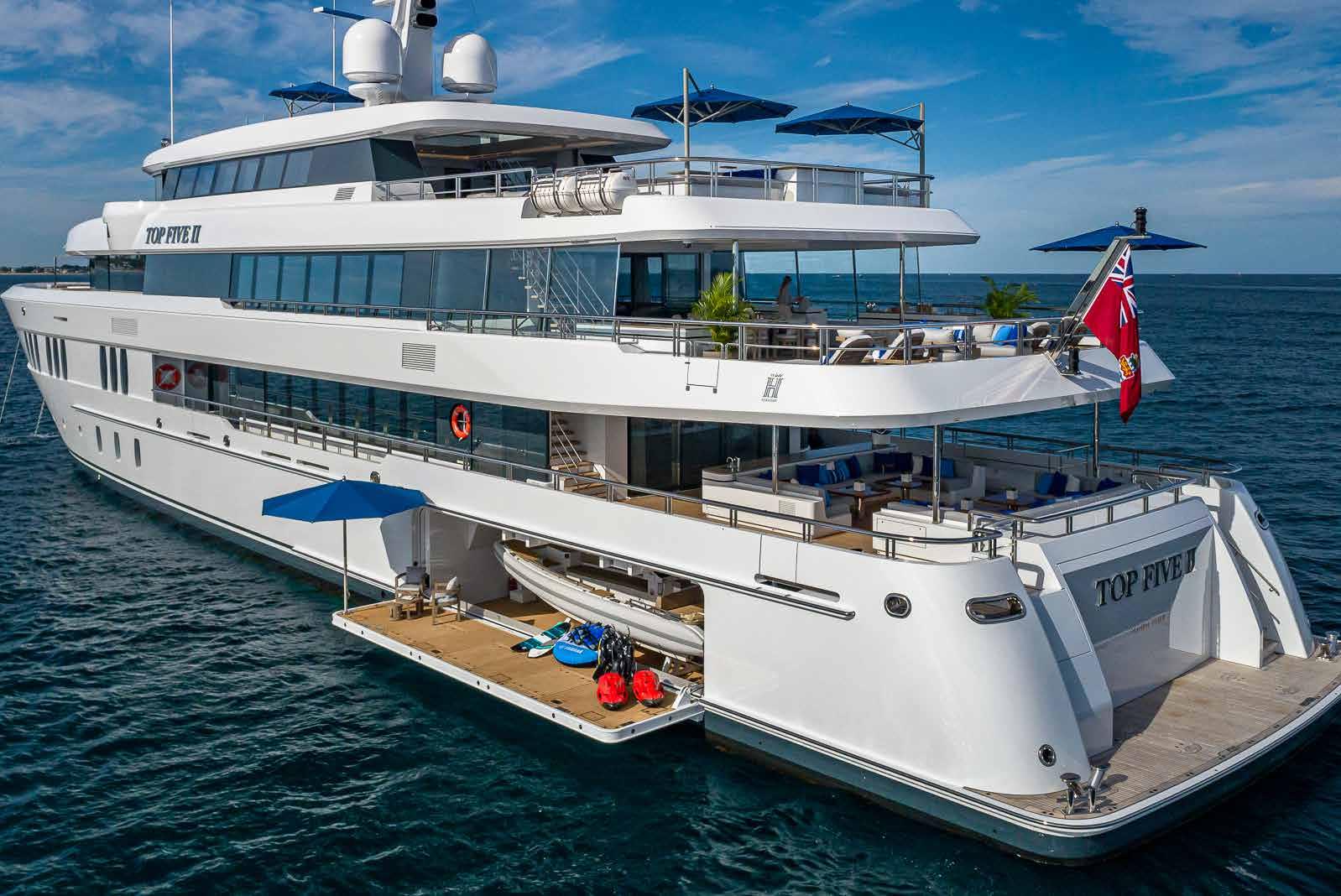 NOTABLE FEATURES OF TOP FIVE II: ~Sundeck Jacuzzi ~Swimming pool ~Beach club ~Sauna ~Fire pit ~Transatlantic range of 3,800 nautical miles ~Air conditioning ~Wi-Fi