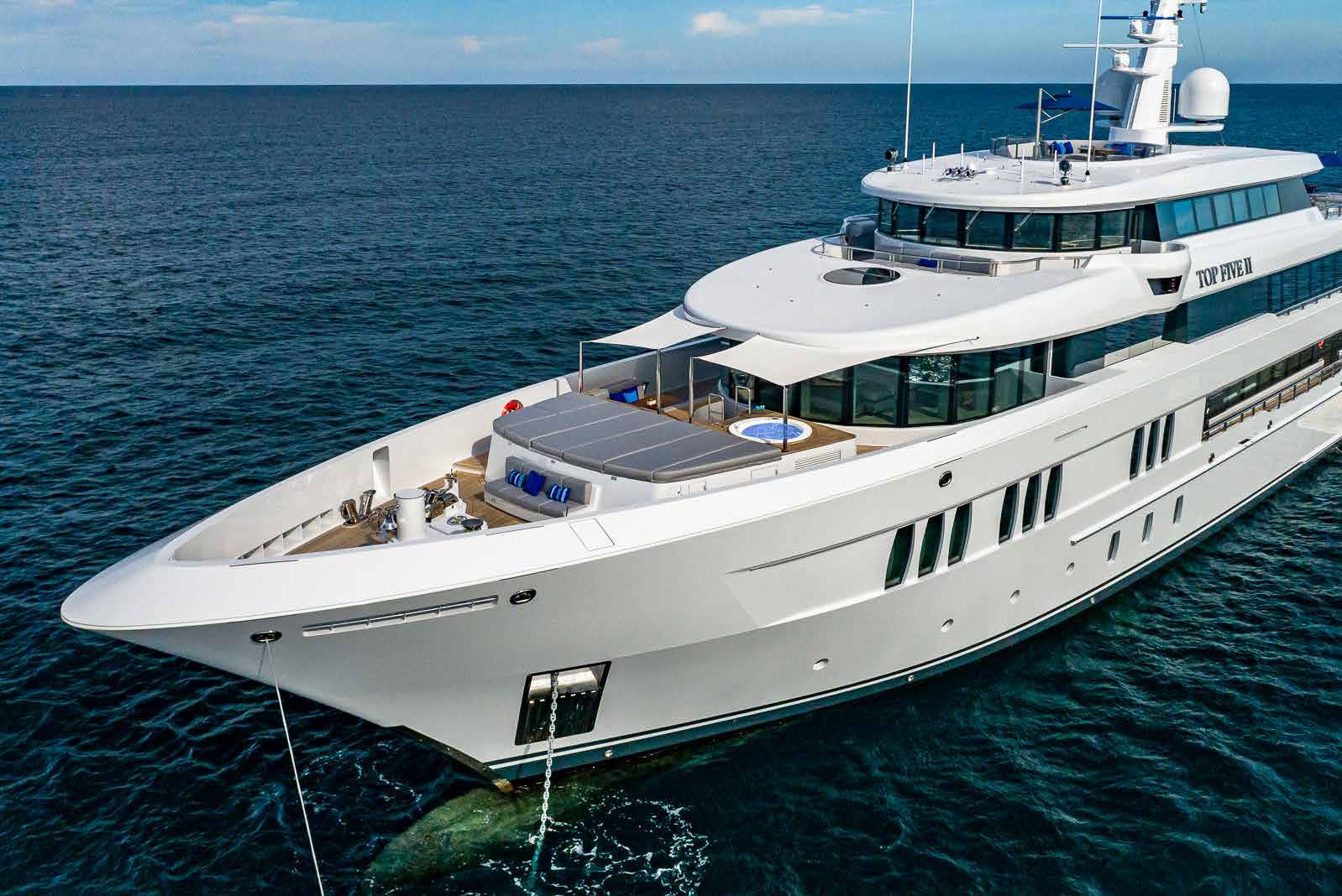 Luxury superyacht TOP FIVE II was built by the renowned Dutch builder Hakvoort and launched in 2021. Measuring 61.0m (200'2") she was designed by Sinot Yacht Architecture and Design both on the outside and the inside.