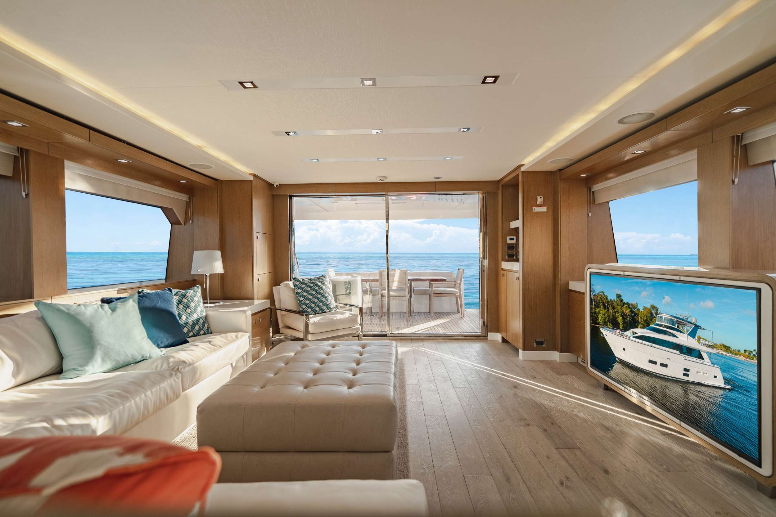 NOTABLE FEATURES OF BELLA SKY: ~Top notch entertainment systems ~Wet bars on both decks ~Plenty of sunbathing spaces ~Light-filled galley dining area ~Top speed of 30 knots ~Great selection of water toys ~Draft of ...