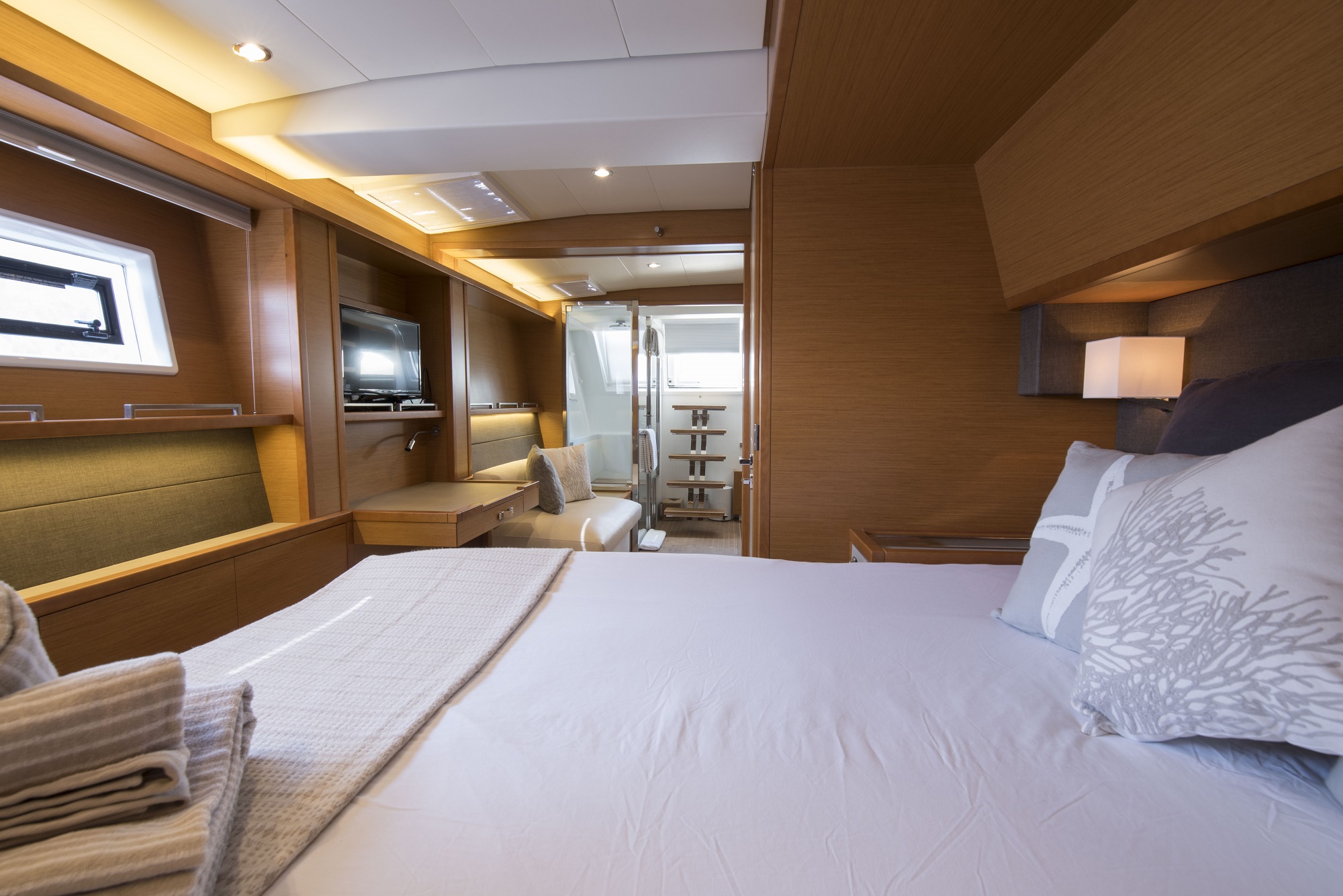 A stairway to port connects to the flybridge above, while the starboard side has a raised sunbed for a nap after a large meal. A sofa lines the stern, and both hulls have a stairway and swim ladder with a hydraulic swim ladder in ...