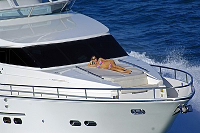 Full walk-around side decks give easy access to the forward seating and sunbathing area. From the expansive aft deck the sweeping aft deck staircase gives safe passage to the fly-bridge for entertaining around the seating and BBQ ...