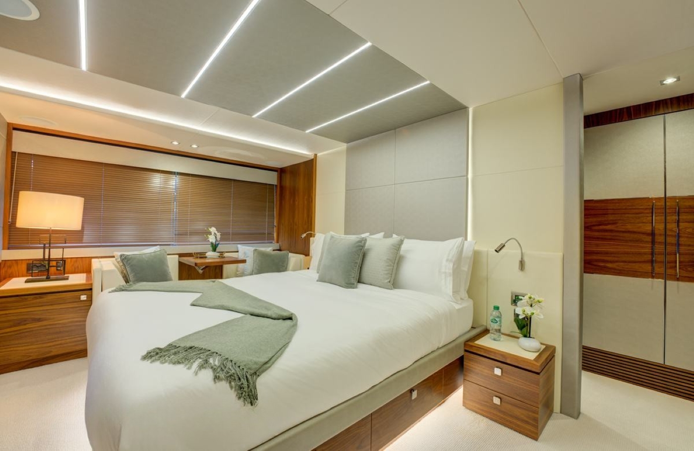 A pair of MAN V12 1,550 HP engines grant a maximum speed of 32 knots and a cruising speed of 20 knots, with a range of 340 ...