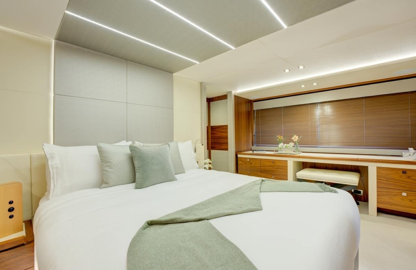 A pair of MAN V12 1,550 HP engines grant a maximum speed of 32 knots and a cruising speed of 20 knots, with a range of 340 ...