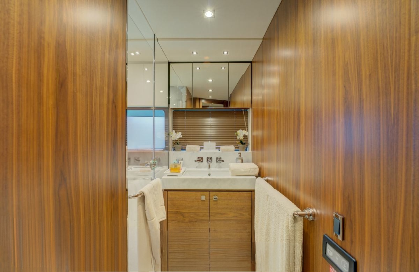 A pair of MAN V12 1,550 HP engines grant a maximum speed of 32 knots and a cruising speed of 20 knots, with a range of 340 ...