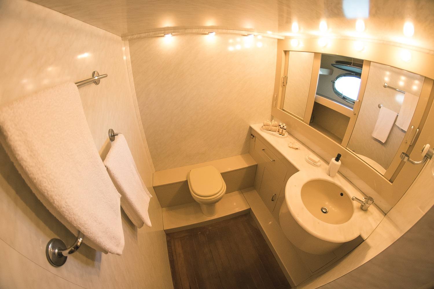 The lower deck layout hosts the guest accommodation forward and the crew accommodation behind.