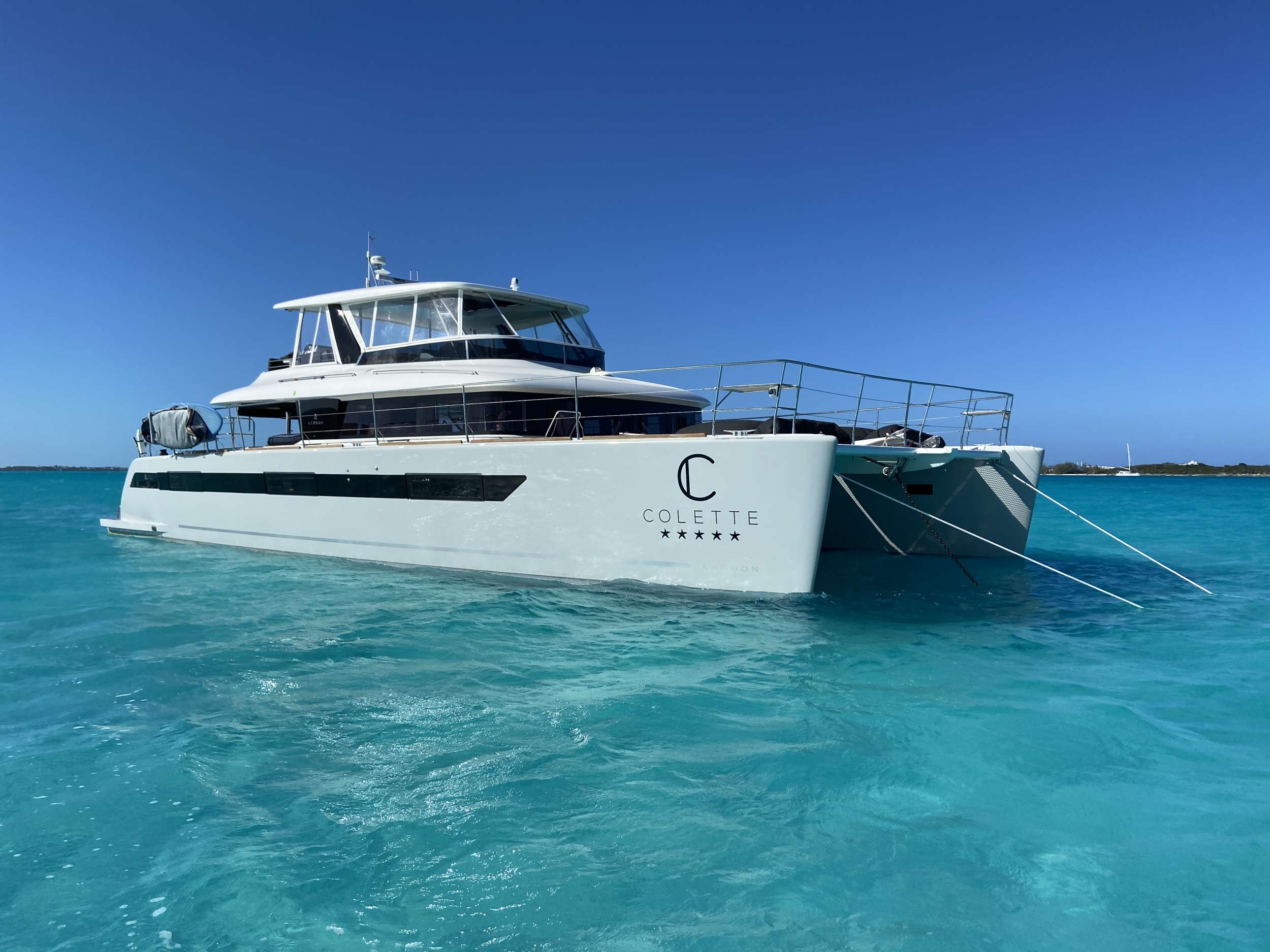 Measuring 19.5m (64ft), power catamaran yacht COLETTE is a lovely Lagoon 630 vessel offering crewed luxury charters for up to 8 guests, accommodated in 4 cabins. She has an attentive and professional crew of 2.