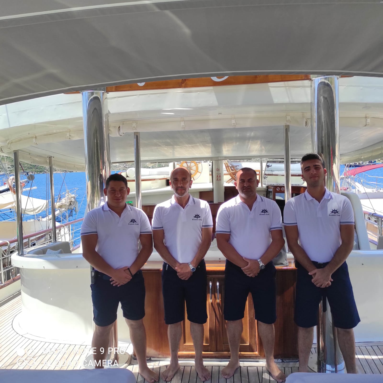 She is a traditional Turkish gulet offering adventure-filled vacations for up to 12 guests in 6 deluxe cabins, while her crew of 4 ensures everyone has a relaxing time on board.