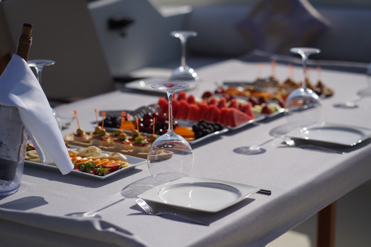 There is a C-shaped sofa and large table for elegant alfresco dining, and the stern has two large sunbeds for guests to rest in the warmth after a large meal.