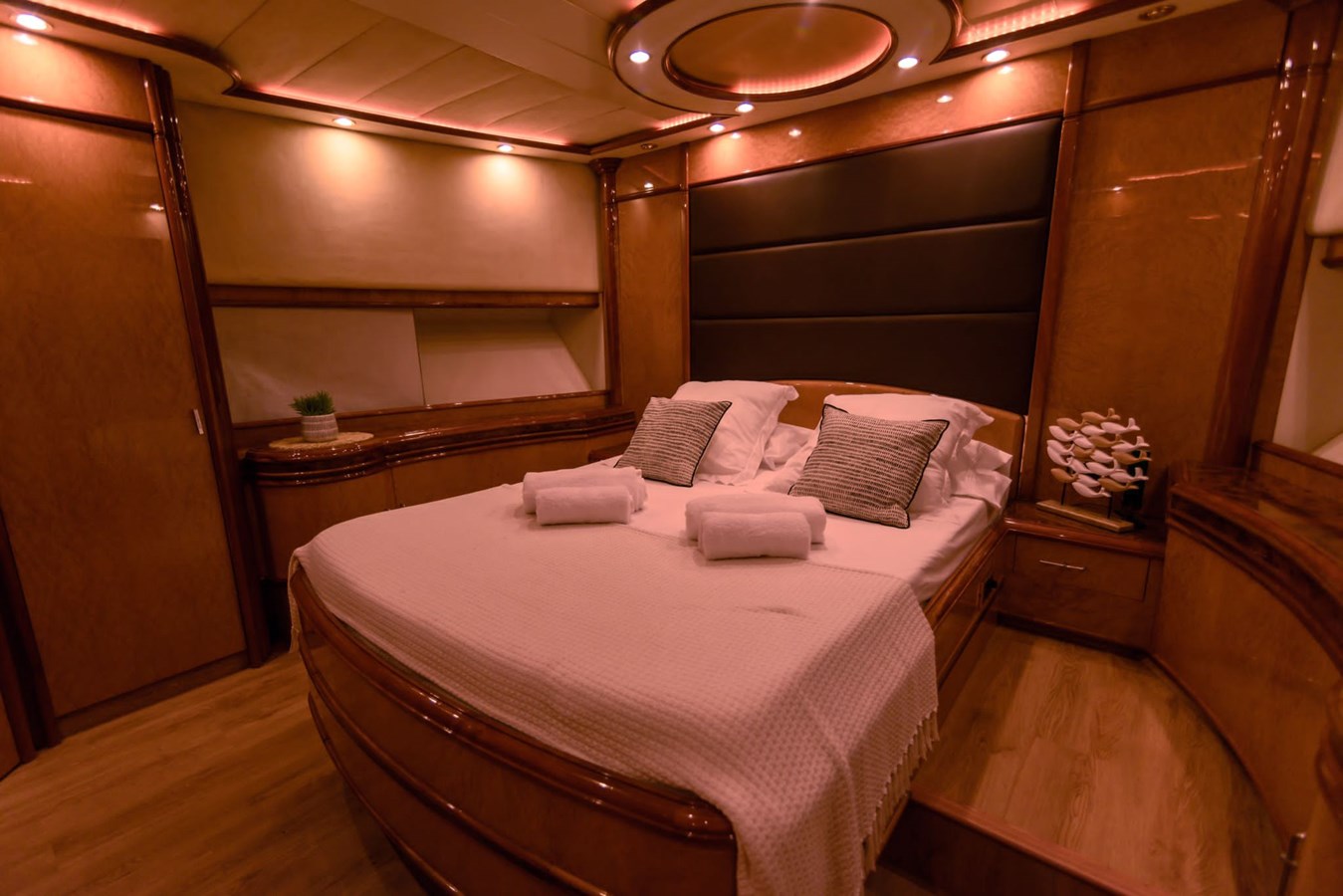 Motor yacht NEPHENTA measures 25.00m (82') and was built by Astondoa in 1997 and refitted in 2020. She has lovely deck areas and welcoming interiors, with spacious accommodation for up to 8 charter guests in 4 cabins.