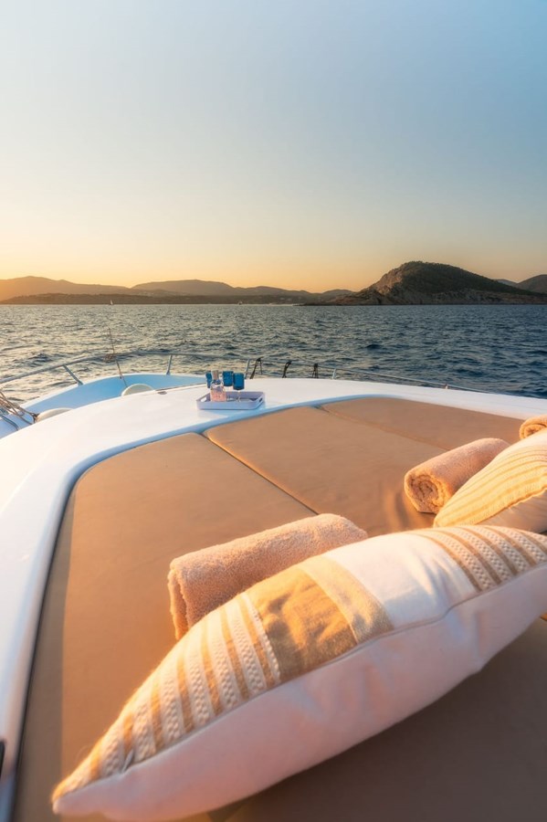 On the foredeck, there is a double sunpad where guests can relax in the sunshine and watch the sunset ...