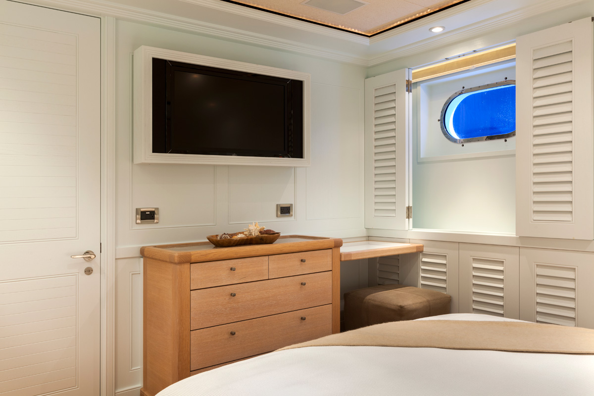 Accommodation onboard is offered for up to 12 guests in five cabins.