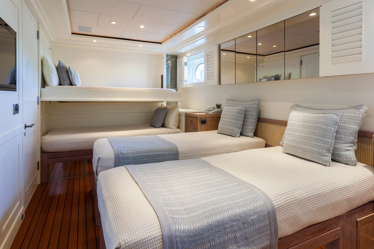 Accommodation onboard is offered for up to 12 guests in five cabins.