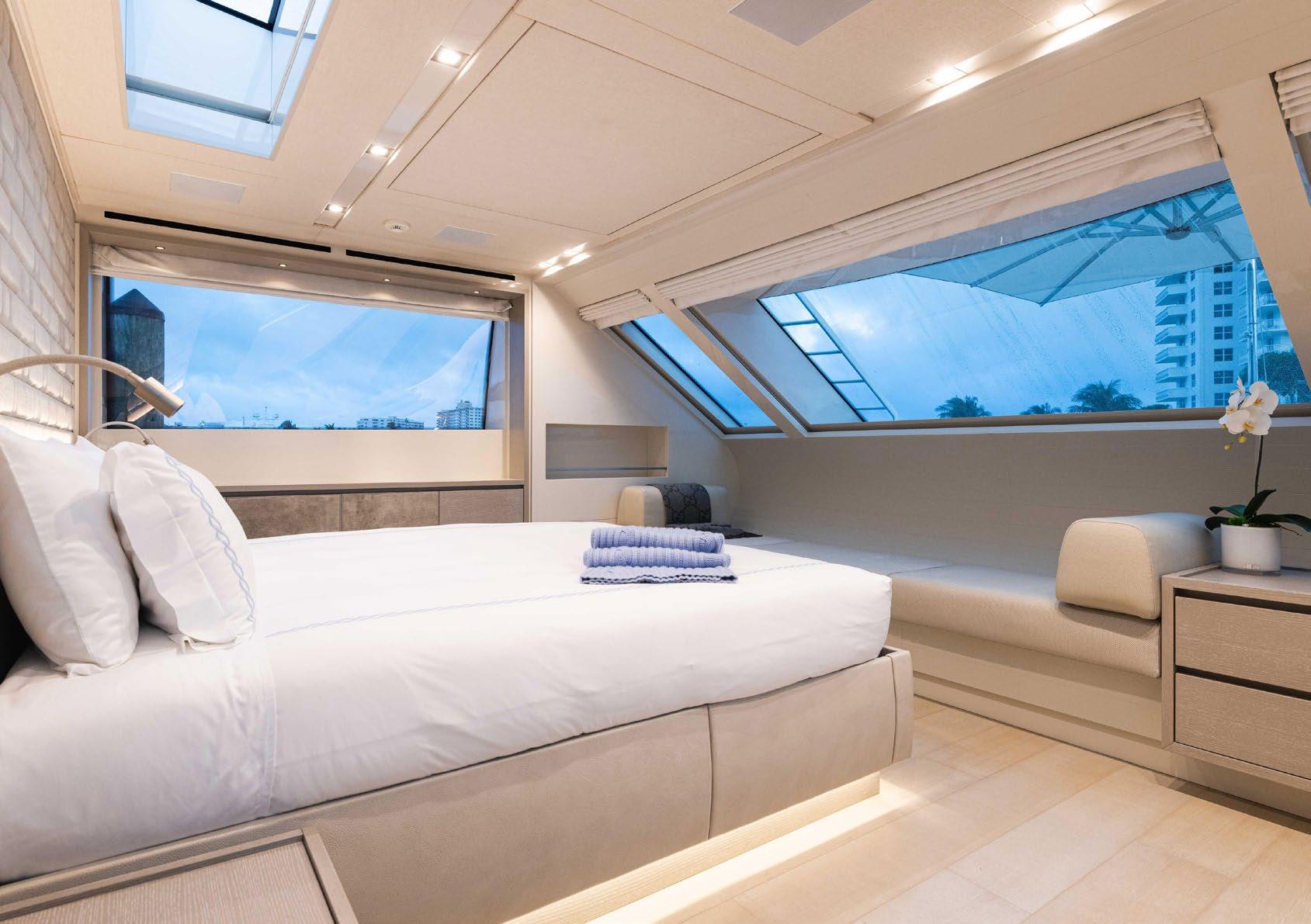 Motor yacht HALCYON measures 34.14m (112') and was built in 2018 by the Italian shipyard Sanlorenzo with interior design by Marty Lowe. Her interiors are modern and welcoming, with a fresh design, accommodating up to 9 charter guests over 4 lovely ensuite cabins.