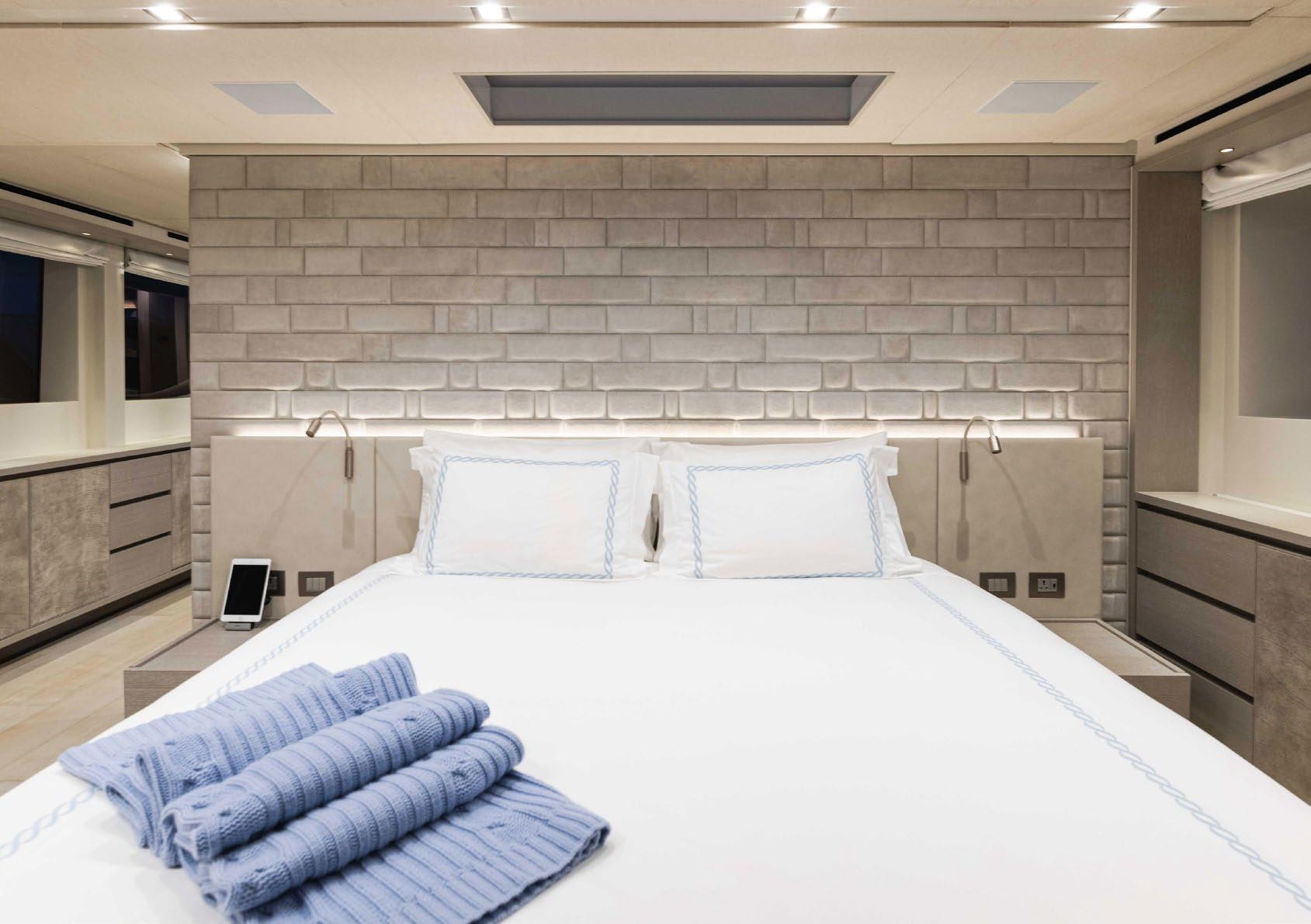 Her interiors are modern and welcoming, with a fresh design, accommodating up to 9 charter guests over 4 lovely ensuite cabins. She has a professional and attentive crew of 7 ensuring guests have a relaxing time on board.