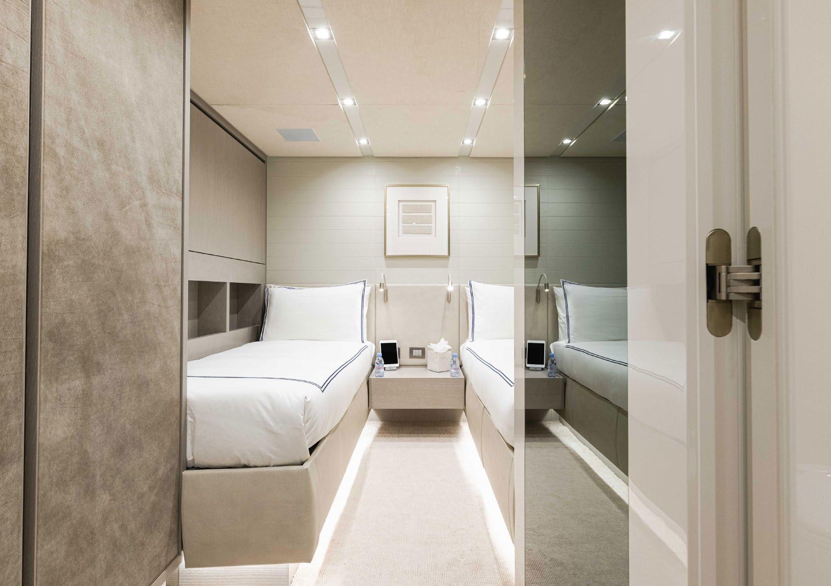 Her interiors are modern and welcoming, with a fresh design, accommodating up to 9 charter guests over 4 lovely ensuite cabins. She has a professional and attentive crew of 7 ensuring guests have a relaxing time on board.