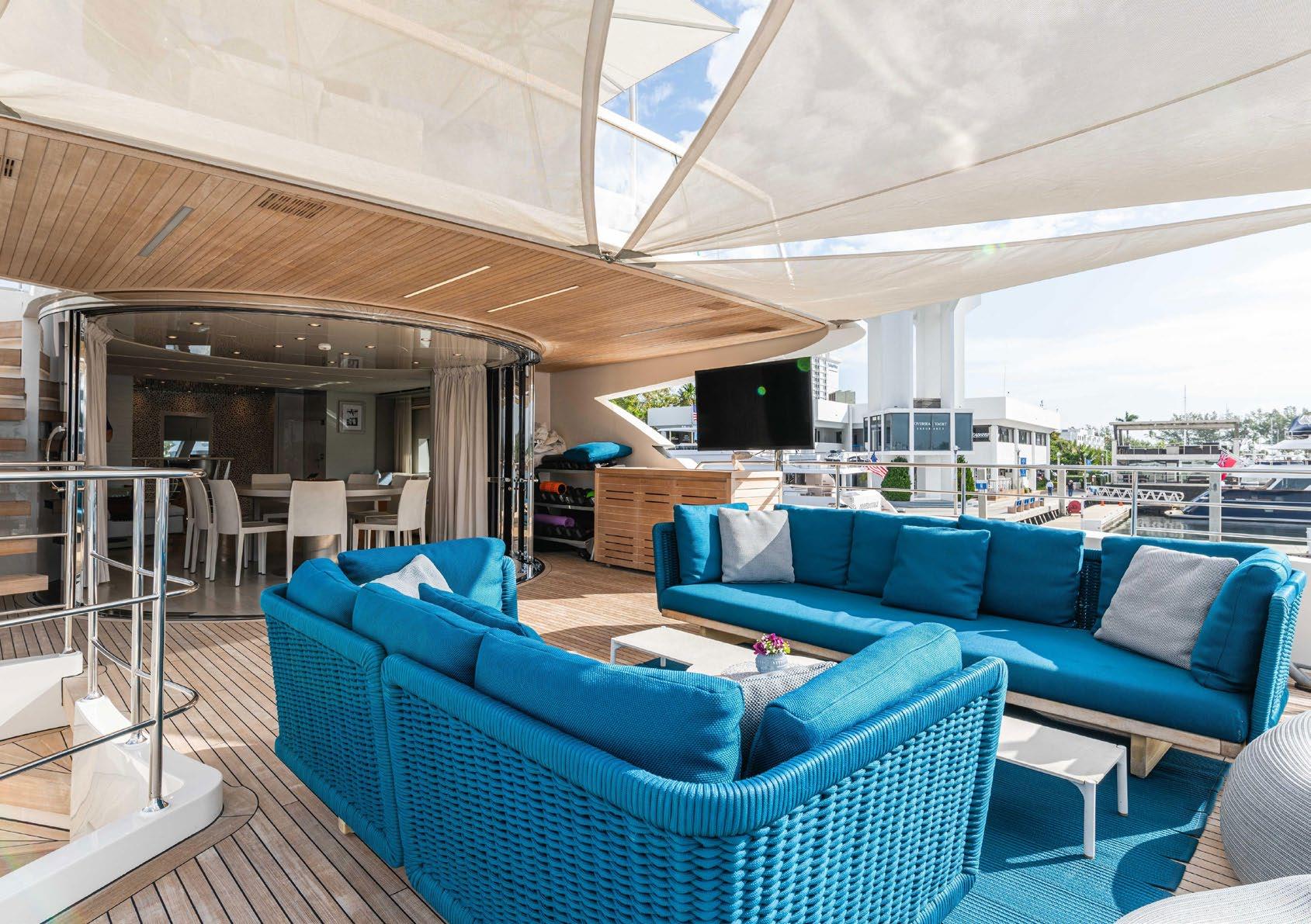 NOTABLE FEATURES OF HALCYON: ~Sundeck Jacuzzi ~Stunning pale modern interiors ~Numerous sunbathing options ~Upper deck and sundeck outdoor TVs ~Great selection of water toys ~Draft of 2.1m/6.9ft to navigate shallow waterways ...