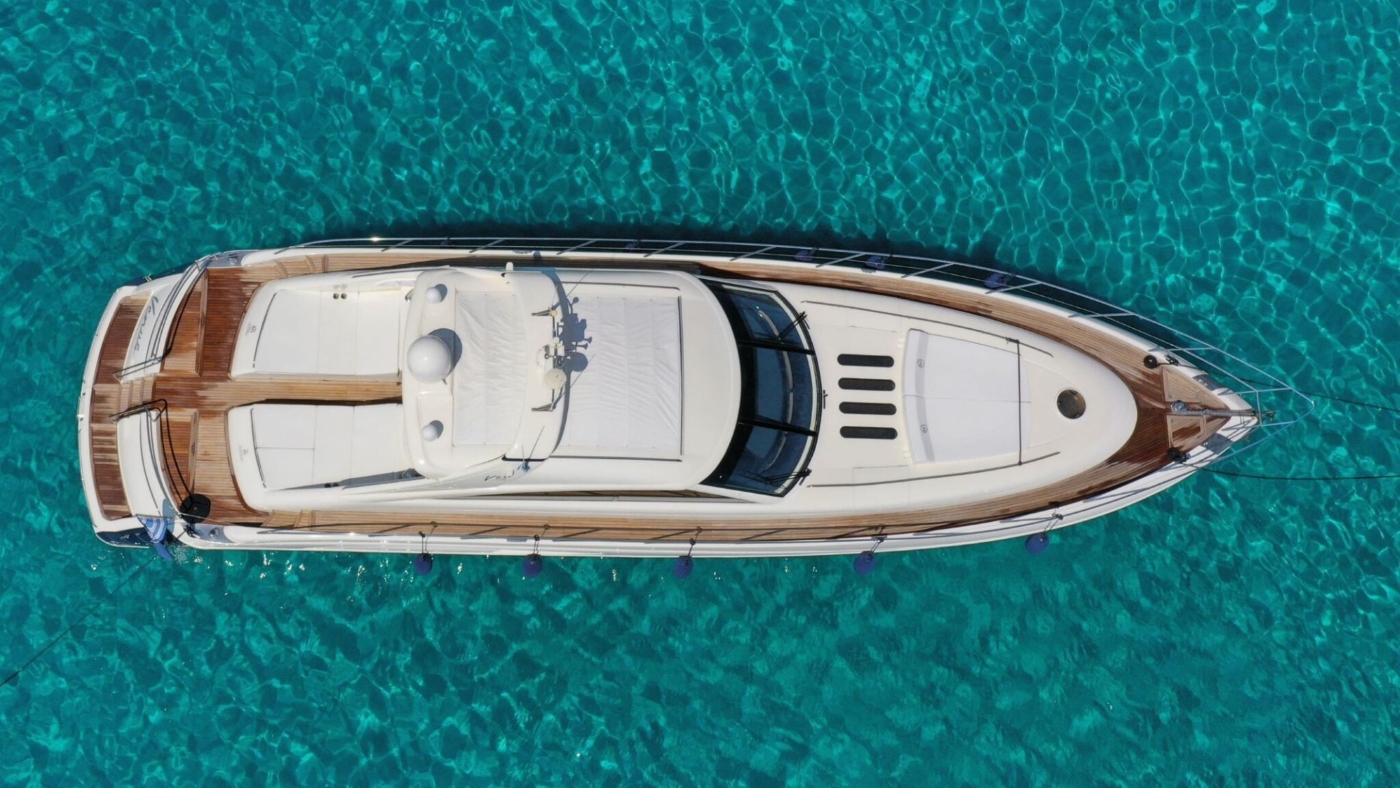 The Master suite is behind to starboard and the bunk cabin opposite, then the engine room, with the crew accommodation in the stern.