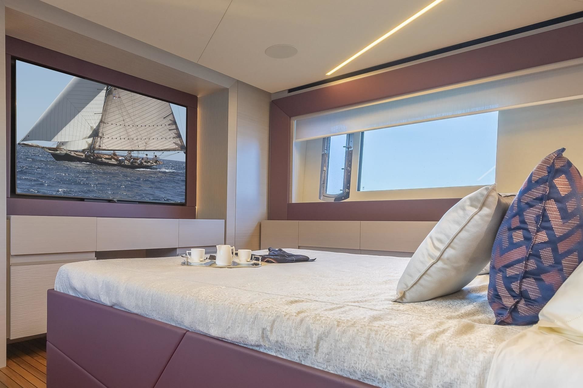 Up to eight guests can remain on board during a cruise, and overnight a total of six guests are accommodated in three well-proportioned en-suite cabins, looked after by an experienced crew of three.
