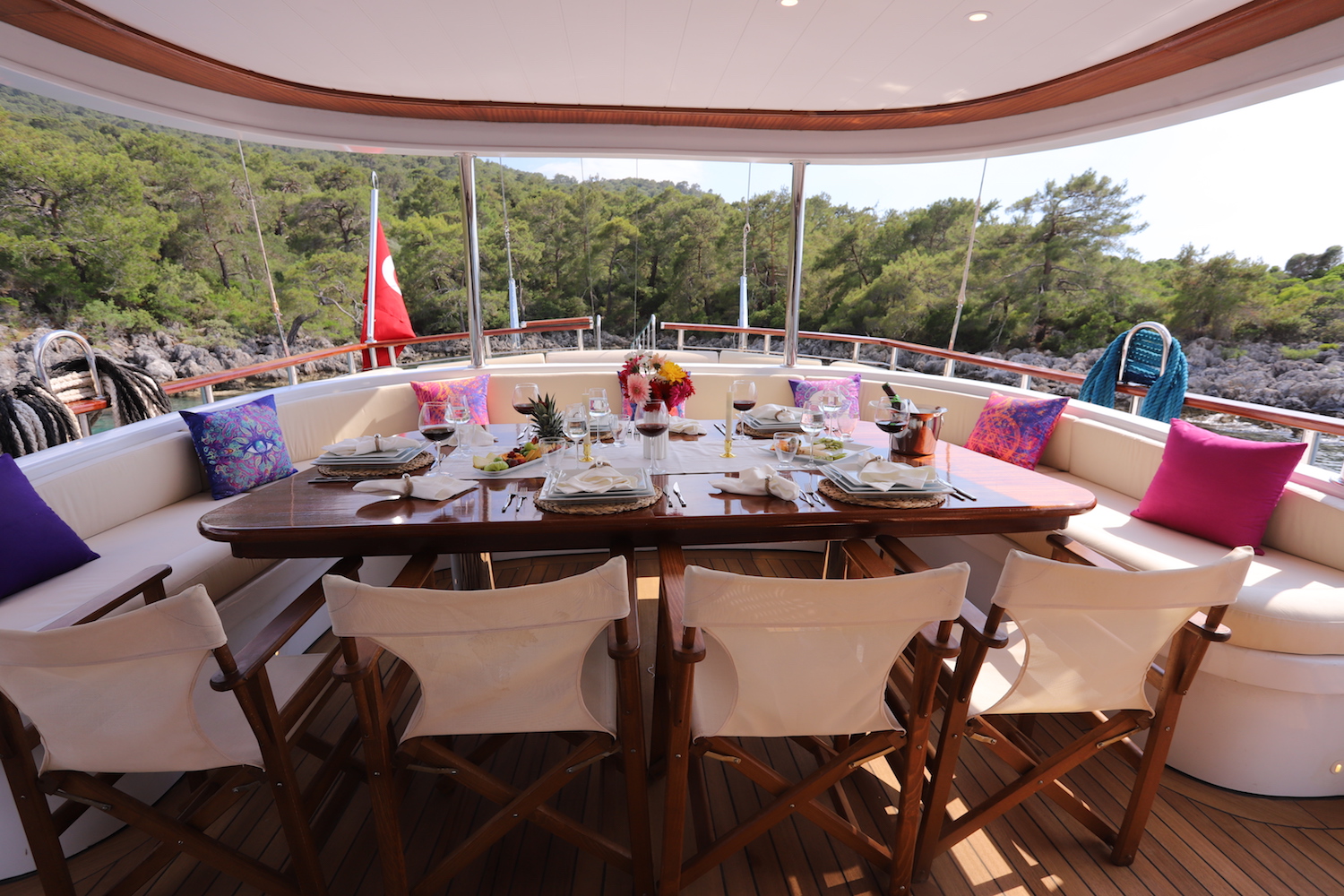 motorsailer gulet yacht QUEEN OF RTT provides yacht charters in The Mediterranean, Europe, Classic, Slovenia, Turkey, Marmaris, Fethiye, and East Med.