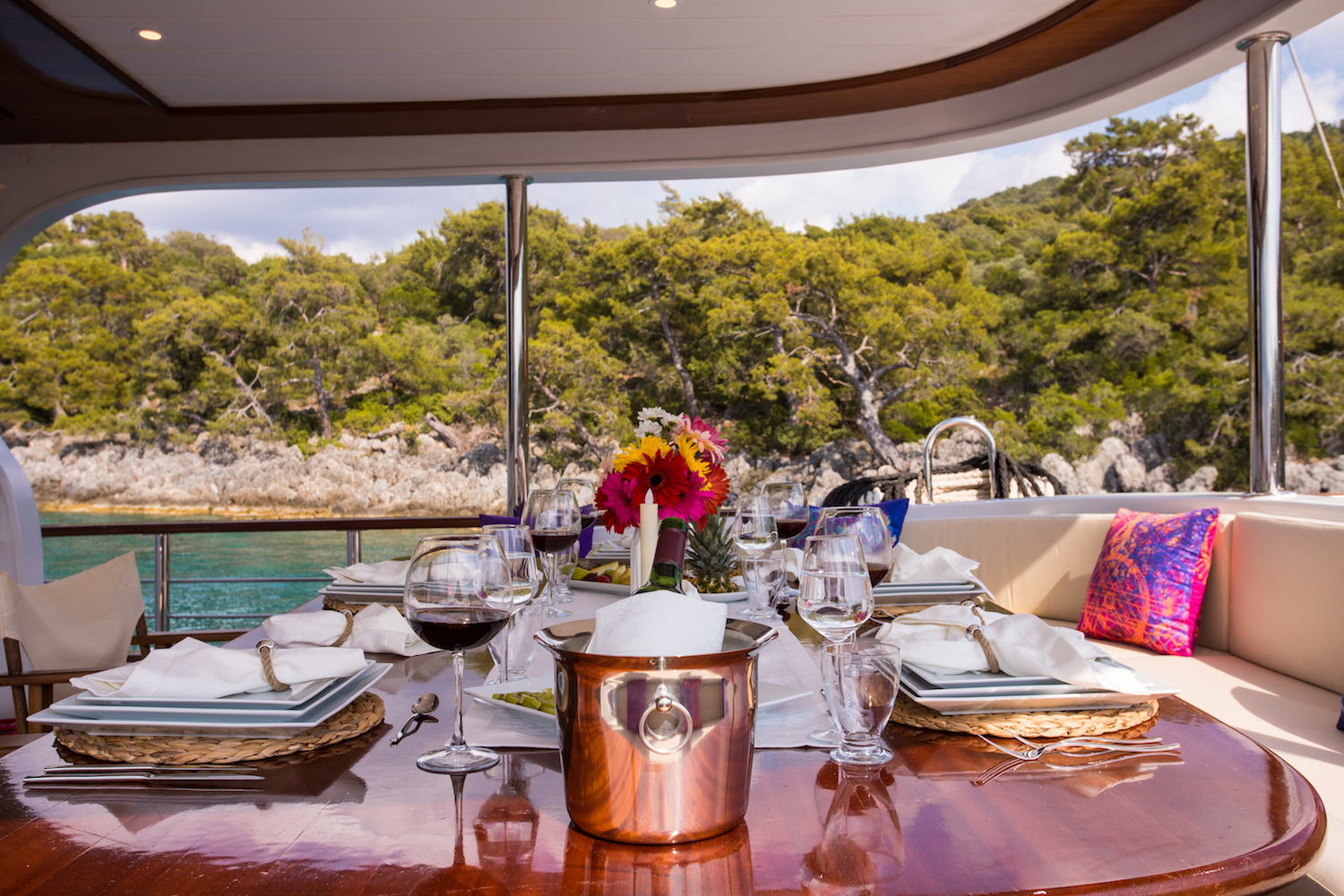 motorsailer gulet yacht QUEEN OF RTT provides yacht charters in The Mediterranean, Europe, Classic, Slovenia, Turkey, Marmaris, Fethiye, and East Med.
