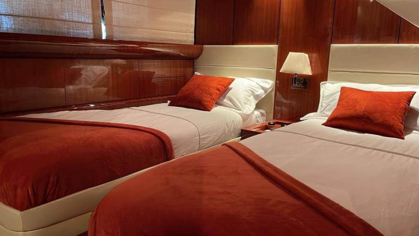 Side walkways lead around to the foredeck, where there is a broad sunbed for guests to sunbathe and take in uninterrupted views of ...
