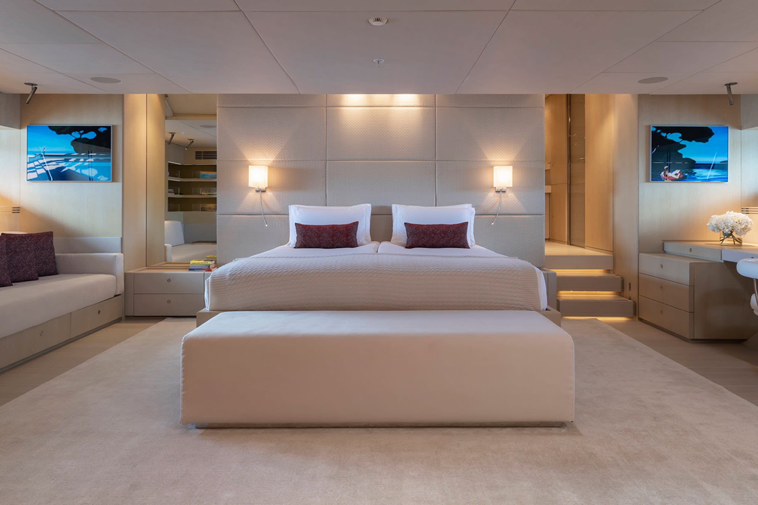 The yacht provides accommodation for 10 guests, in 1 owner’s suite and three guest suites as well as a single cabin.