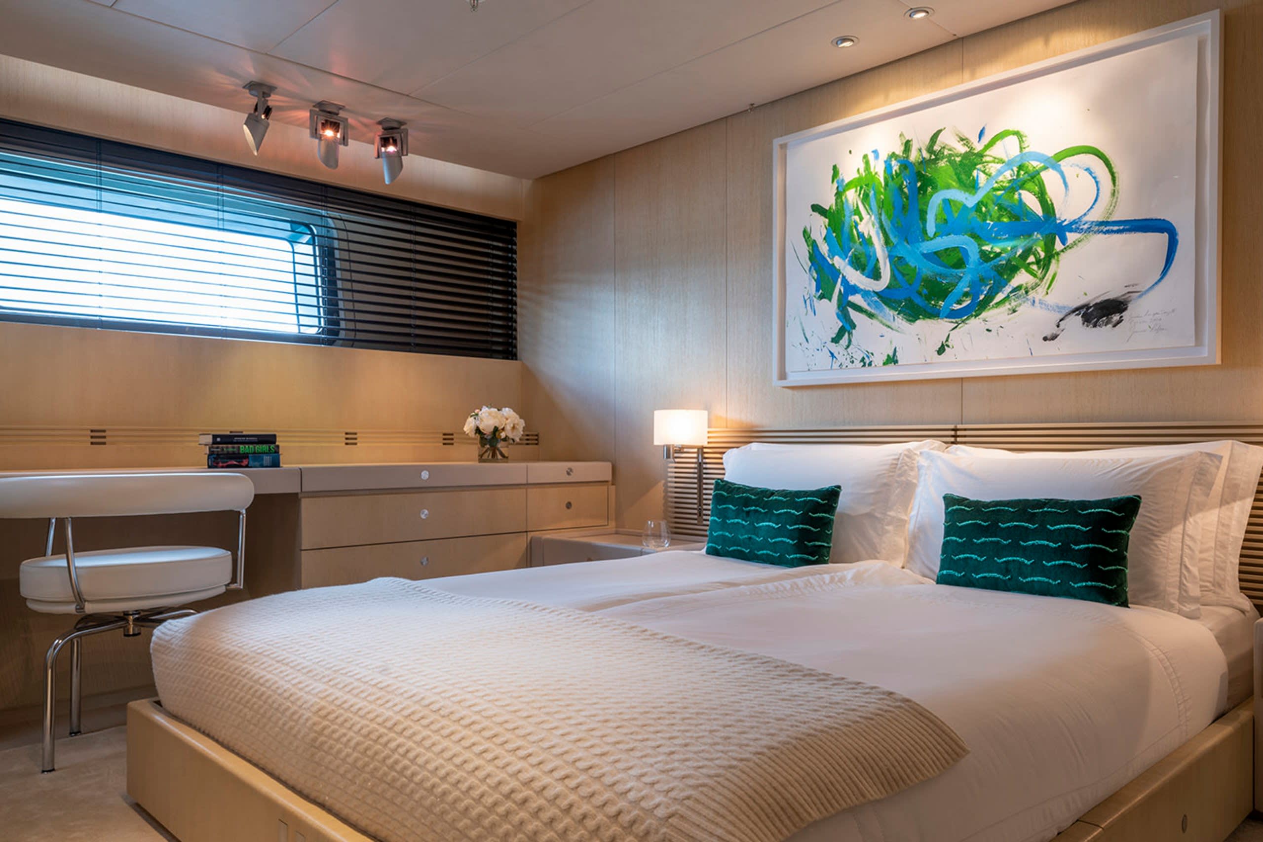 The yacht provides accommodation for 10 guests, in 1 owner’s suite and three guest suites as well as a single cabin.