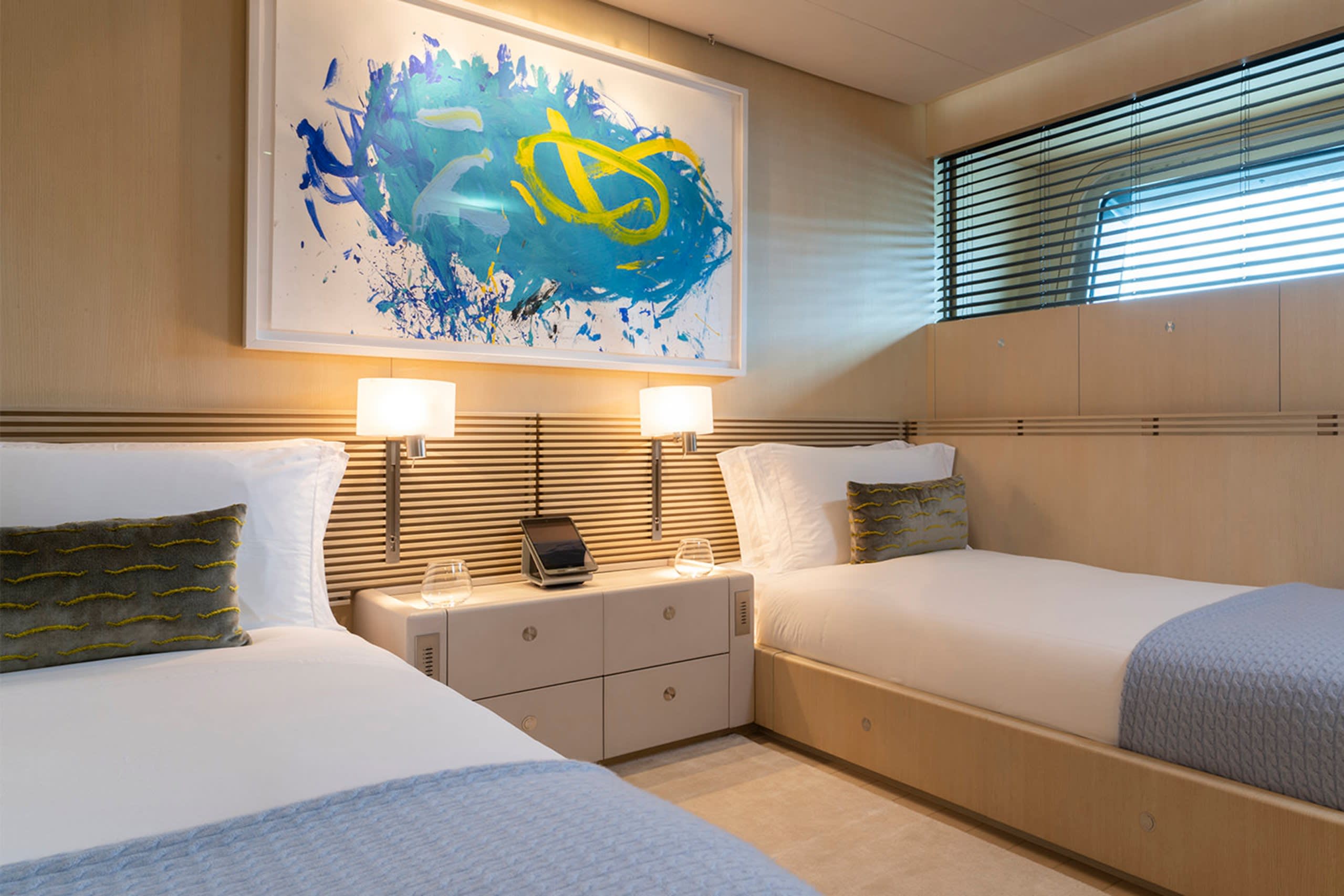 The yacht provides accommodation for 10 guests, in 1 owner’s suite and three guest suites as well as a single cabin.