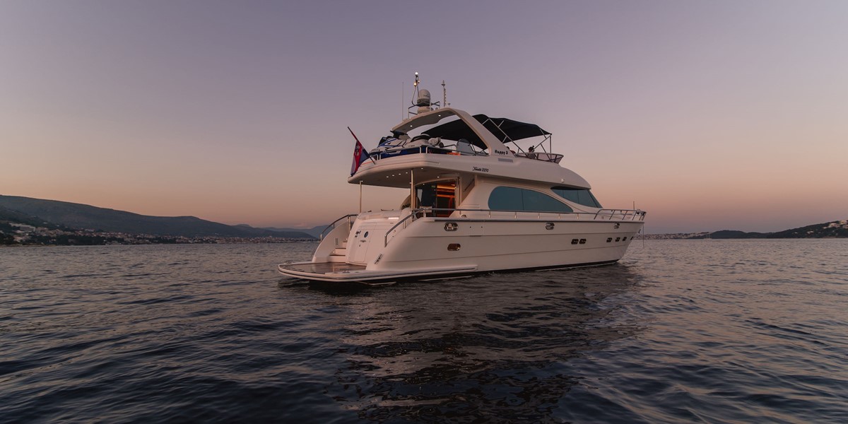 Motor yacht HAPPY 3 is a 22m (72' 6”) semi-custom built Yaretti 2210 charter yacht, launched in 2004 in Italy and refitted in 2021. She has the luxury of a flybridge design, well-appointed dining area on the aft deck, spacious salon and practical swim platform.
