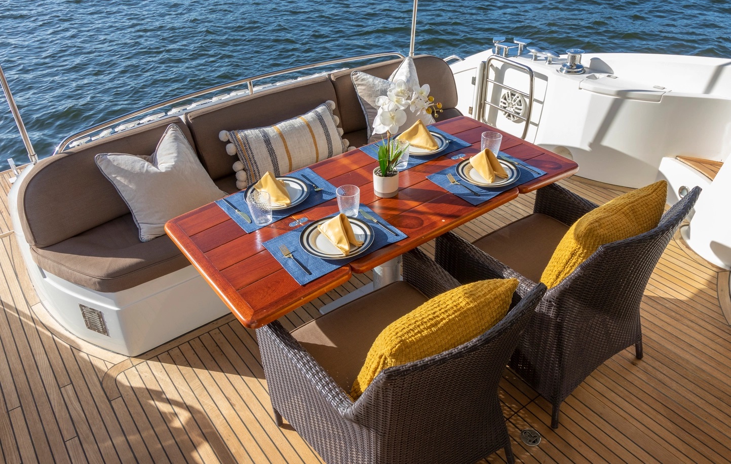 Luxury yacht UNFORGETTABLE is a 22.63m (72’) Sunseeker 72FLY which was delivered in 2006 and underwent a refit in 2022 incorporating new interior design, TVs throughout, Wi-Fi and new teak decking on the aft and flybridge.