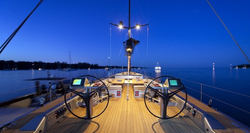 Exterior living is laid to exquisite teak decking and exceptional space. The cockpit offers a large alfresco dining area with 2 tables, and wrap around seating. Forward of the cockpit is the main companionway leading below, followed by a massive, raised sun pad.