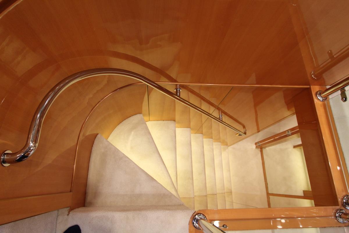 The spacious saloon has sofas in a C-shape with a large flat-screen TV to enjoy and the adjoining dining area boasts interior access to the flybridge. There is a day head on the main deck opposite the large and well-equipped, galley.