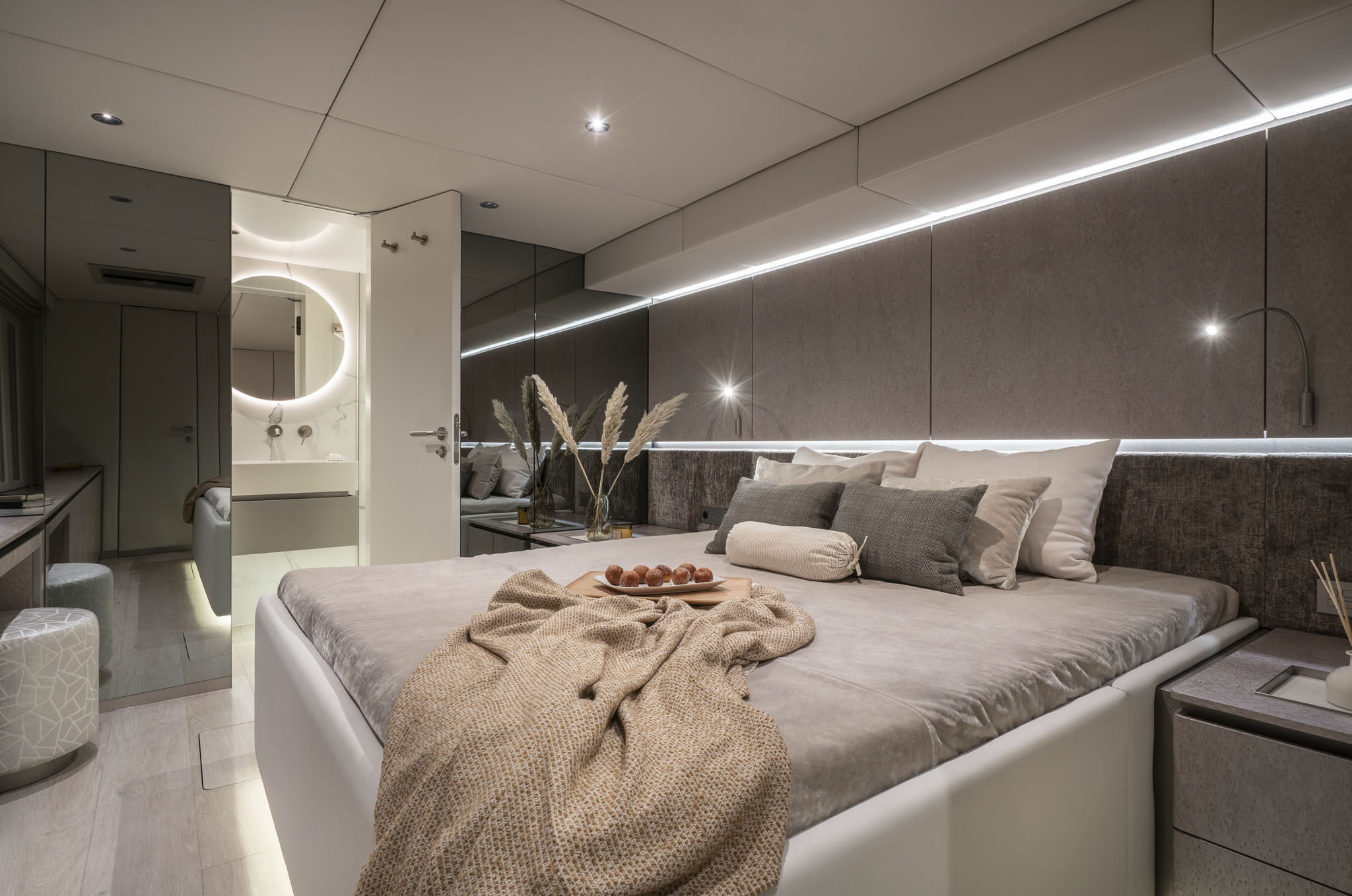 YOLO welcomes up to 8 guests on board thanks to her 4 cabin layout. Four crew members are on board to ensure guests have a first-class charter experience.