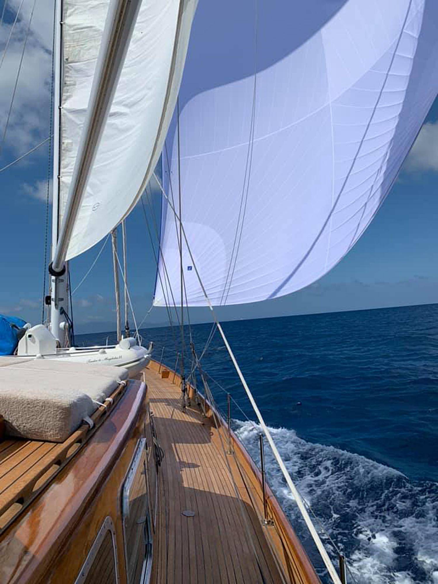 Sailing yacht MAGDALUS II is 25.66m (84’2”) gullet built by Custom Line and designed by the famous Sangermani in Italy in 1971 and completely refitted in 1990. Meticulously maintained she features a displacement wood hull structure and a wood superstructure. MAGDALUS II can accommodate up to eight charter guests in four cabins.