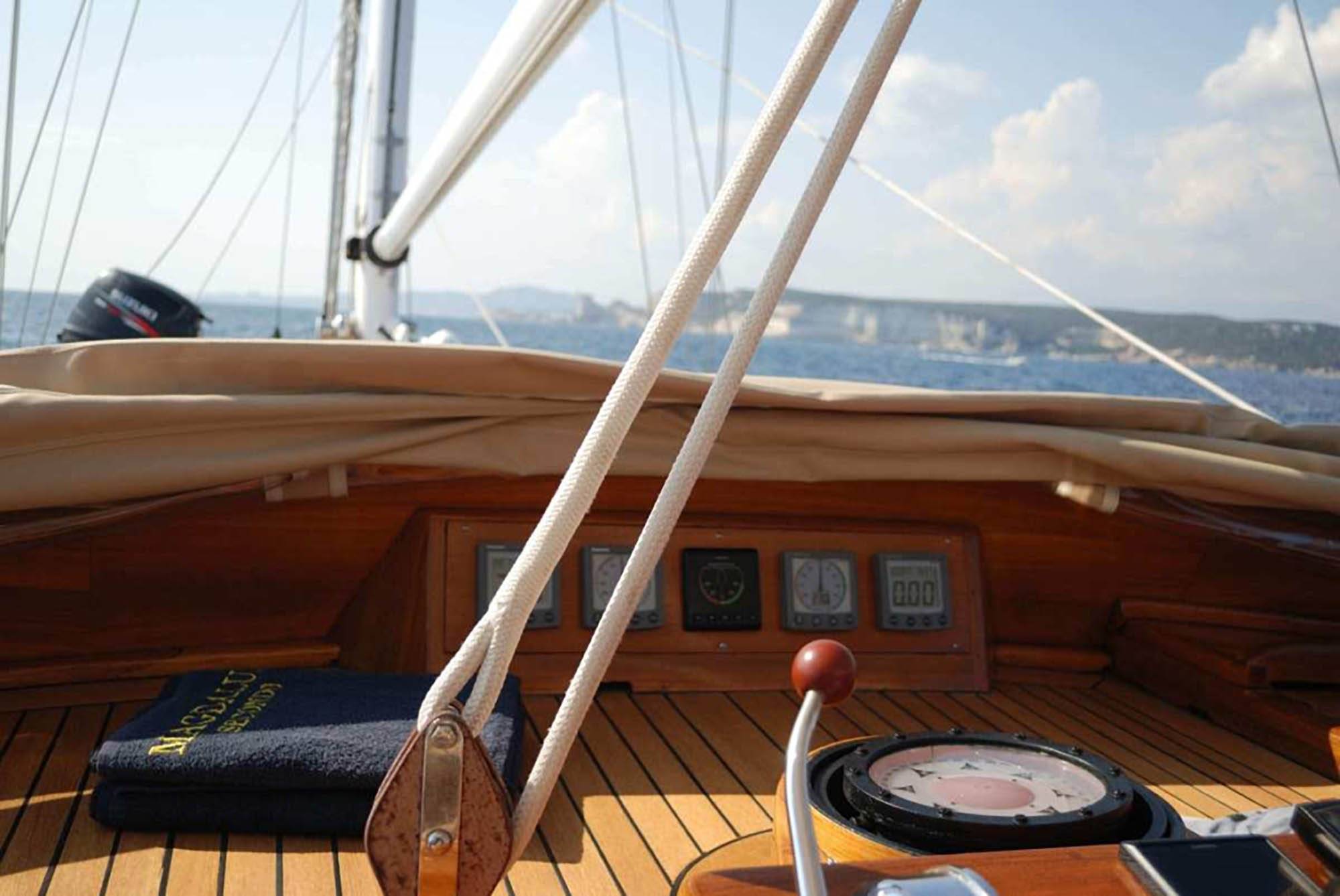 Sailing yacht MAGDALUS II is 25.66m (84’2”) gullet built by Custom Line and designed by the famous Sangermani in Italy in 1971 and completely refitted in 1990. Meticulously maintained she features a displacement wood hull structure and a wood superstructure. MAGDALUS II can accommodate up to eight charter guests in four cabins.