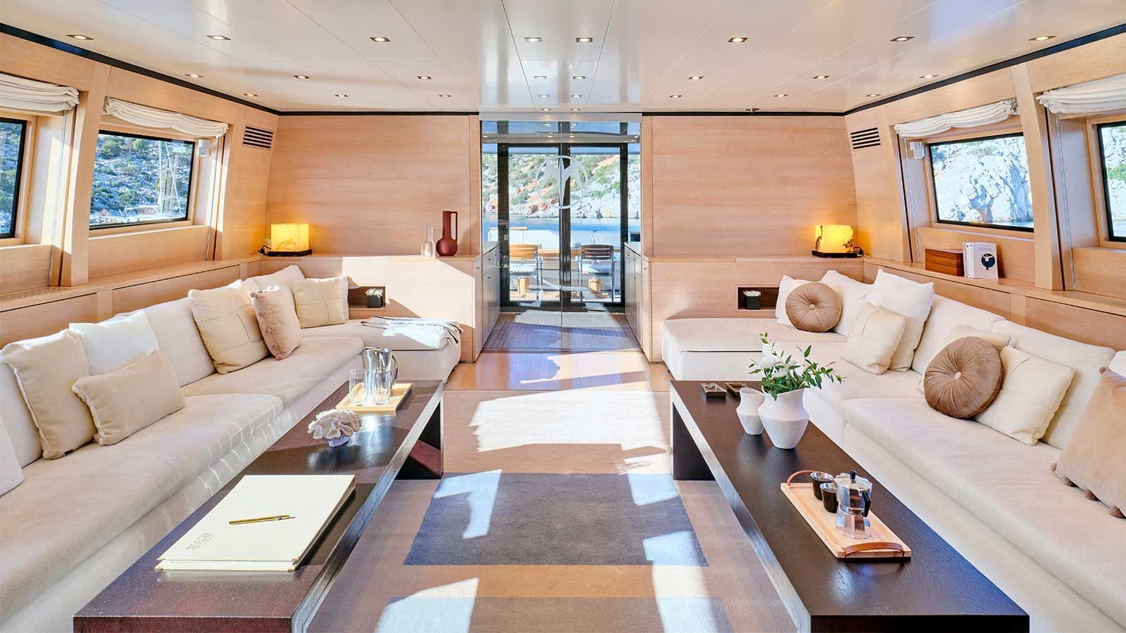 Having been refitted in 2021 AMICI PER SEMPRE offer beautifully designed interior spaces including a comfortable main salon lounge and dining area on the main deck.