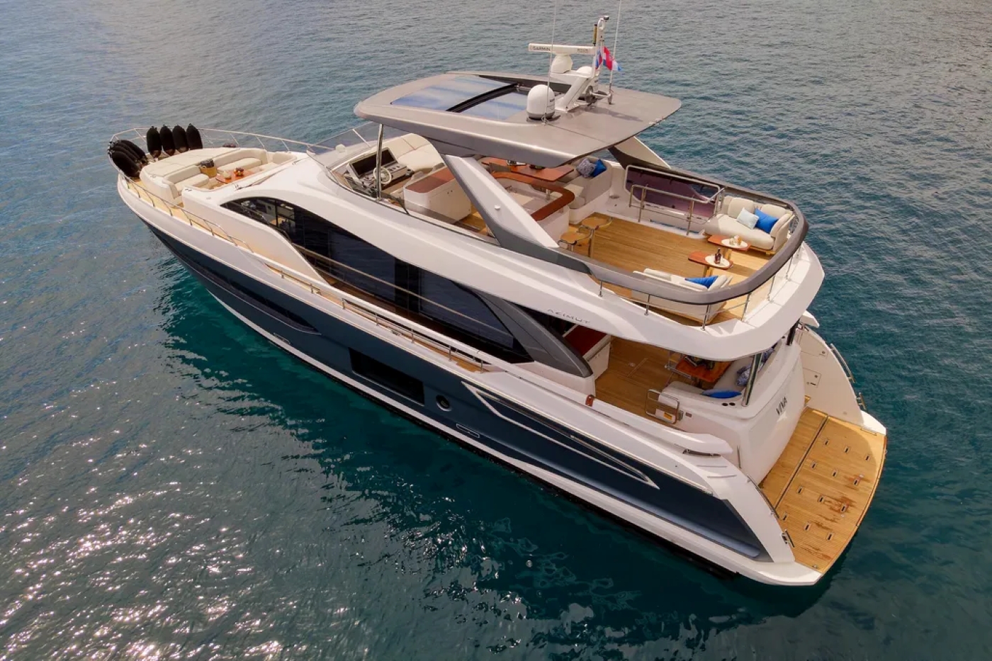 With interior design by Achille Salvagni and large panoramic windows, both internal decks are flooded with light. Eight guests can be accommodated in four luxury cabins, three double and one twin. Three crew members will attend to guests every need to ensure a fantastic charter experience.