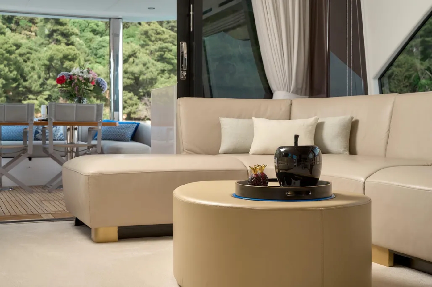 The teak decks, soft and neutral furnishings and seamless access to the main salon ensure guests can enjoy time with friends and family.