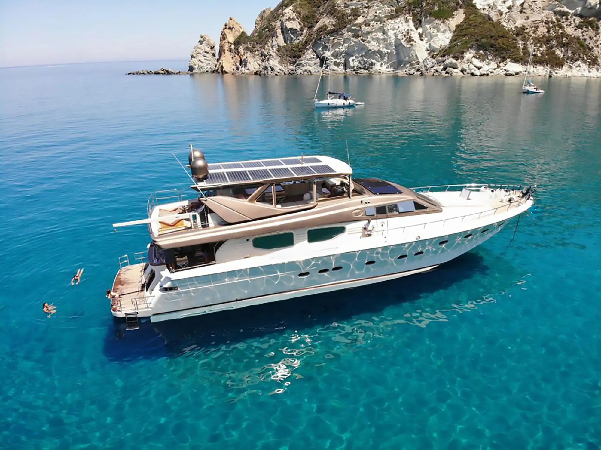 Luxury yacht PRIME is a 28.00m (91' 10") Rizzardi Technema 80 vessel built in 2020 by Posillipo and refitted in 2025 and must be noted for her environmental credentials with solar panels and hybrid engines and generators.