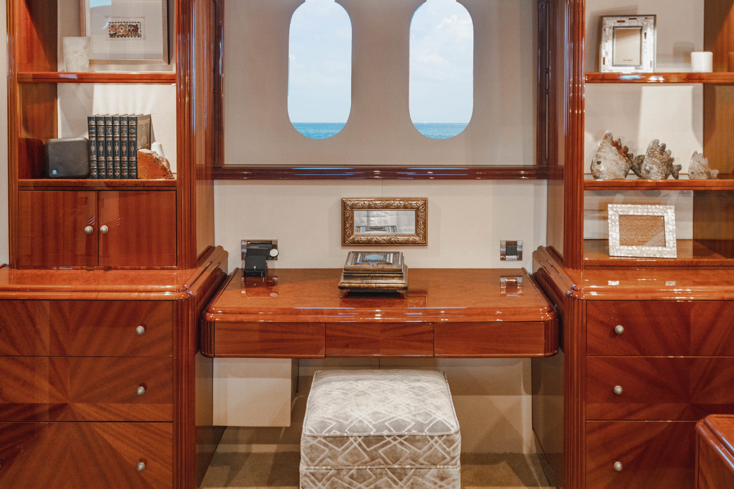 Her spacious, light interior accommodates six guests in three staterooms including a large, full-beam king master and two queen guest staterooms, each with spacious en-suites. A professional crew of three will ensure guests have an outstanding charter experience.