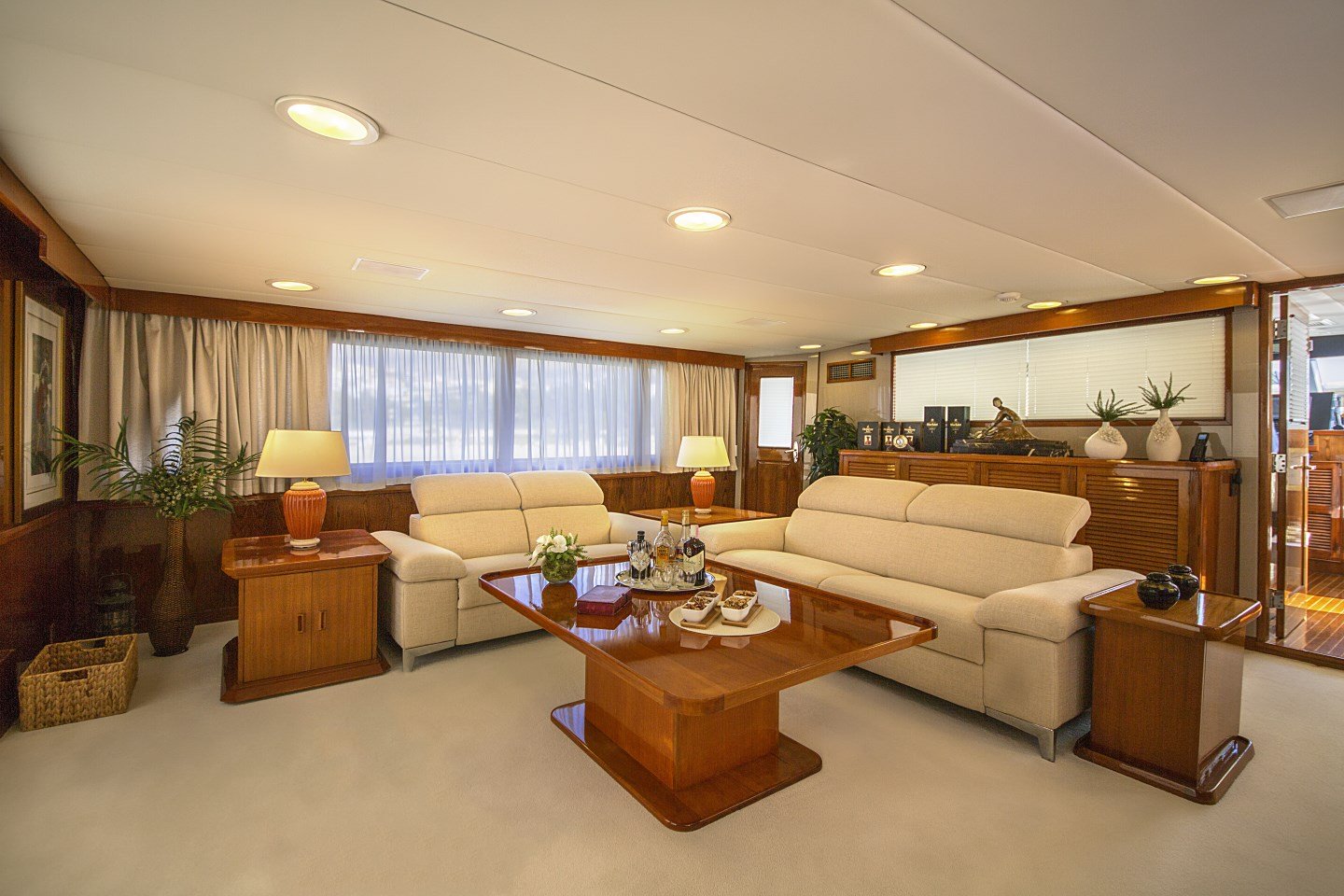 The spacious main salon has an adjoining formal dining space that can be opened or closed through sliding doors. The well-proportioned galley provides the crew convenient access to enable first class service.