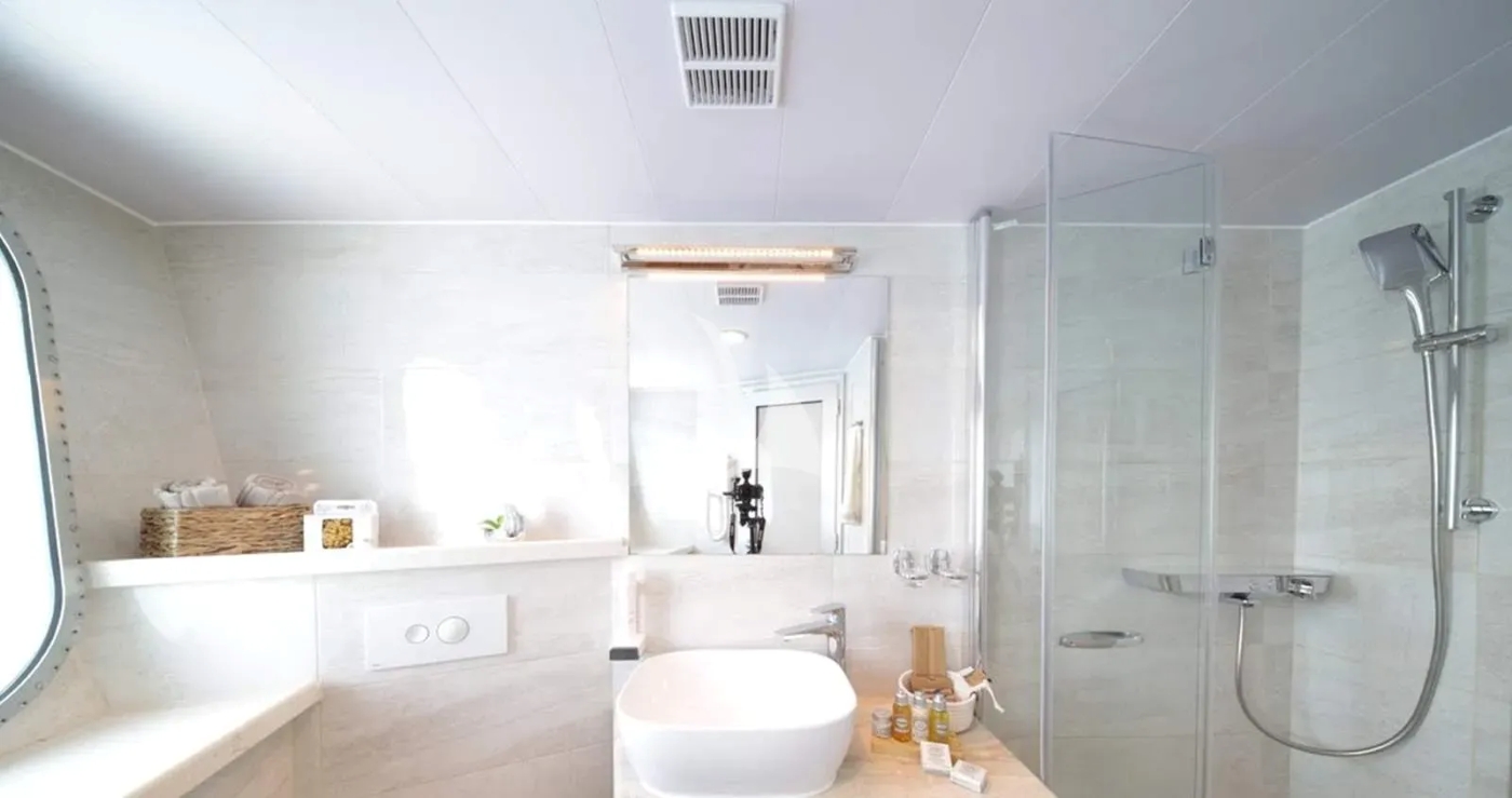 All the cabins benefit from spacious ensuite bathrooms and air conditioning. Tender and Toys