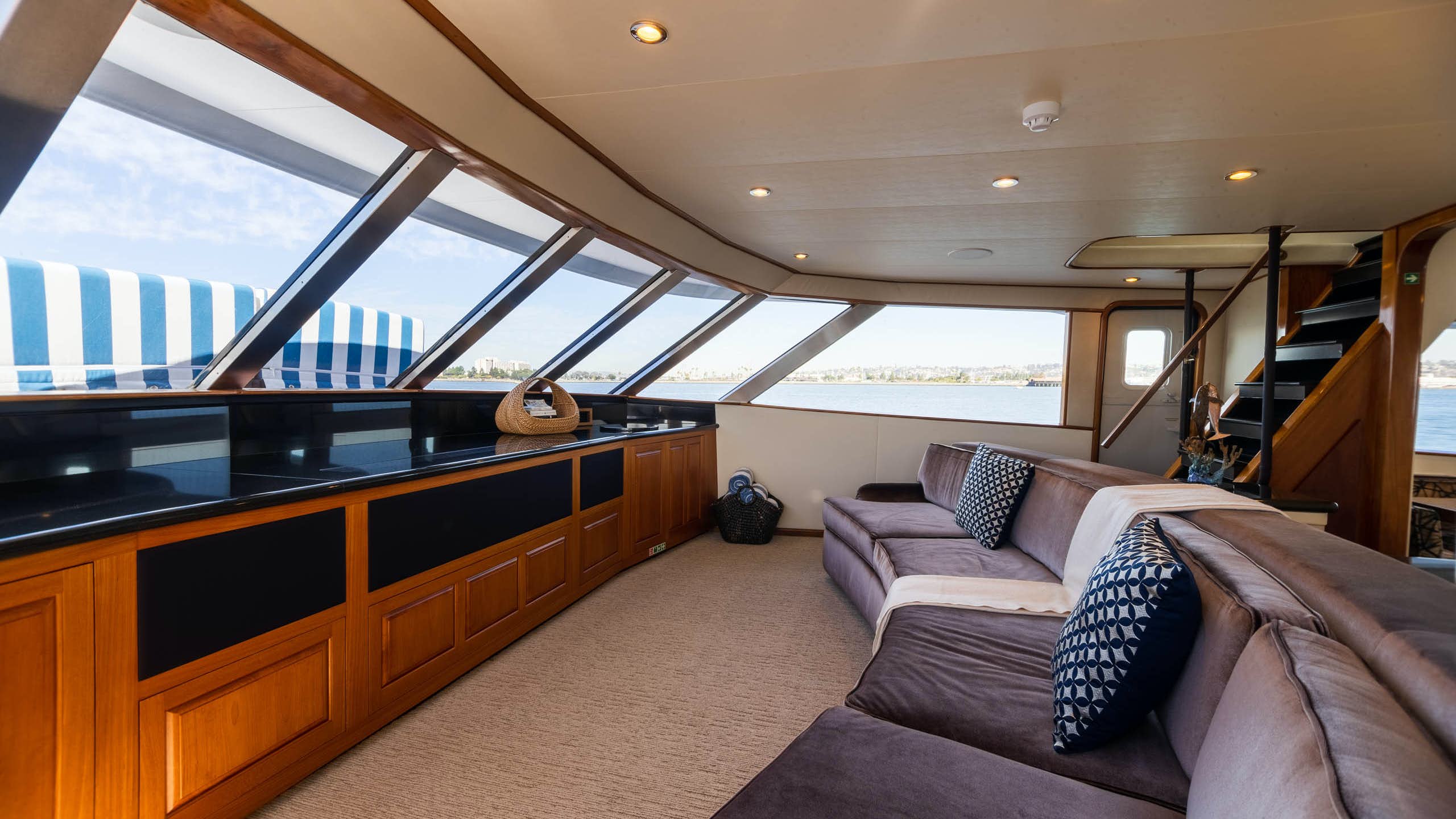 The main salon, with direct access from the aft deck, features a luxury u-shaped sofa and dining table able to seat all the guests. Forward of the main salon finds the well-equipped open galley and bar where guests can enjoy a relaxed atmosphere.