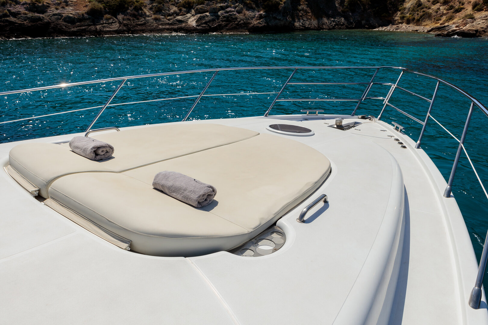 She has plenty of exterior areas to enjoy the sun with dining options at the aft and sundeck. With four cabins all en-suite, eight charter guests can be accommodated with three crew members offering fabulous service.