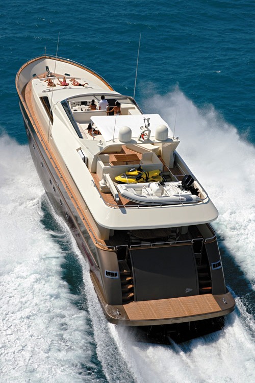 The panoramic fly bridge offers ample space exposed to the sun. The main deck, with its vast open space living room and the kitchen that is equipped with all types of accessories, represents the convivial and recreational area.